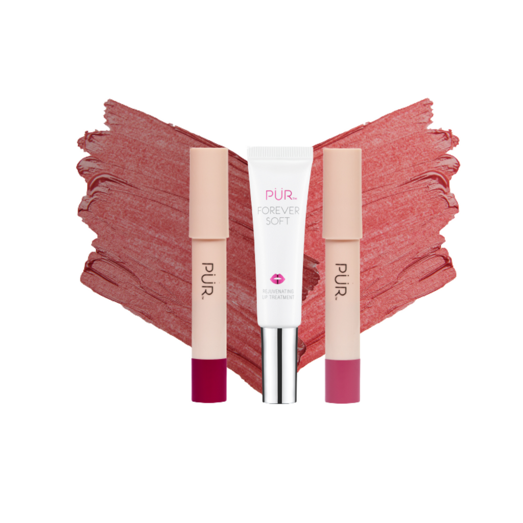 Give your lips some love with PÜR Love Your Lips! Including 2 Silky Pout Creamy Lip Chubbies in shades Sugar Plum and Raspberry Spritz plus the Forever Soft Rejuvenating Lip Treatment, your lips will never look better.